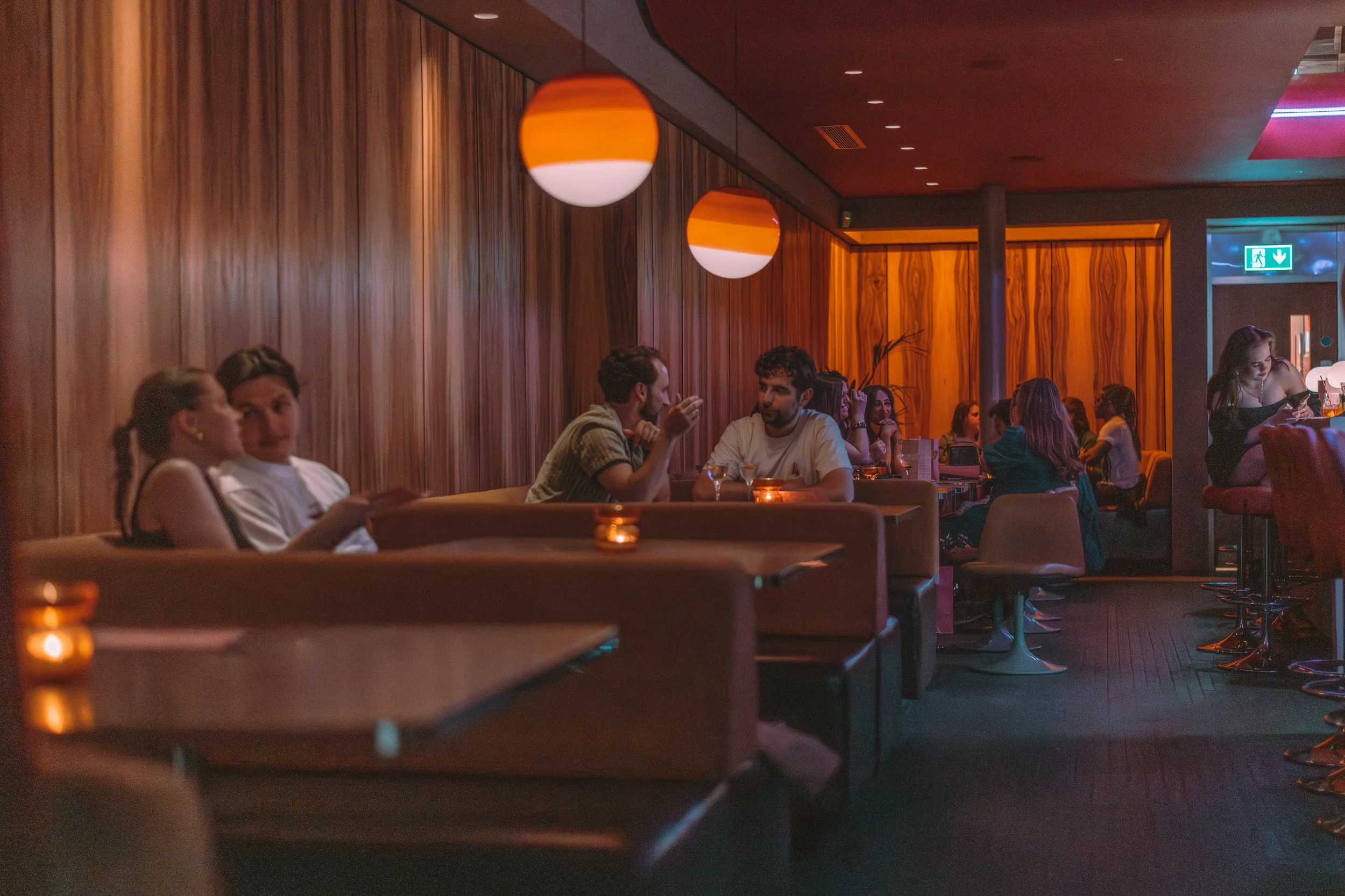 Rather than staged interiors, the work centred on mood and presence: low light, reflective surfaces, small moments and the relationship between people, sound and space. The aim was to reflect the pace of the aperitivo ritual and the considered calm of the listening room, allowing each space to retain its distinct identity while remaining connected.